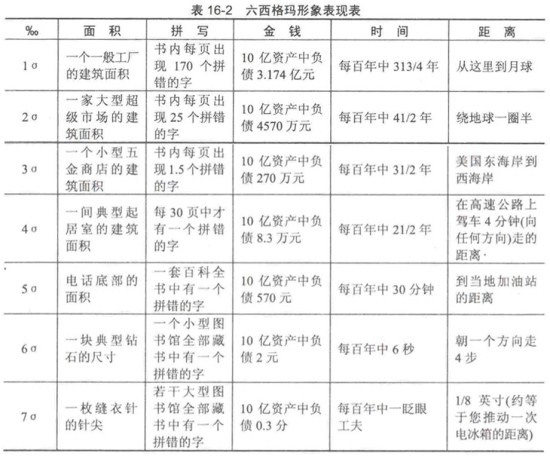 (3)六西格瑪?shù)男蜗蟊憩F(xiàn)如表16-2所示。