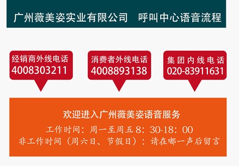 薇美姿目前存在經(jīng)銷商和消費者兩條400外線和一條內(nèi)線,呼叫中心系統(tǒng)的建立規(guī)避了資源整合不齊全,管理難等問題,自動靈活的幫助企業(yè)處理大量和各種各樣的電話呼入和呼出服務等運營活動,將整合企業(yè)內(nèi)分屬各職能部門統(tǒng)一為客戶提供的優(yōu)質(zhì)的服務。