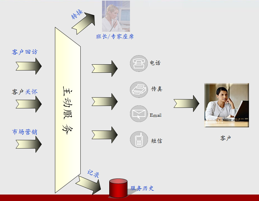 呼叫中心的贏利能力已經得到了眾多企業的認可和重視,呼叫中心作為主動營銷渠道的作用越來越凸顯;在客戶服務的主動化、個性化和多層化需求的驅動下, 呼叫中心系統的職能也向主動化和多元化方向發展, 呼叫中心正在從被動服務向主動服務轉變,正在從客戶服務向營銷與服務并重的方式轉變,
