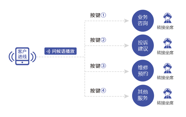 而智能IVR語音導航在實現物業企業客戶服務智能化方面起到了不可忽視的作用和客戶體驗,單純的傳統IVR導航存在不少痛點,一直困擾著企業的客服中心:1、在與人工客服通話之前,客戶可能已經經歷了復雜、冗長的IVR菜單;2、IVR選項不符合客戶意圖令客戶感到沮喪;3、傳統按鍵層層按,浪費用戶時間。